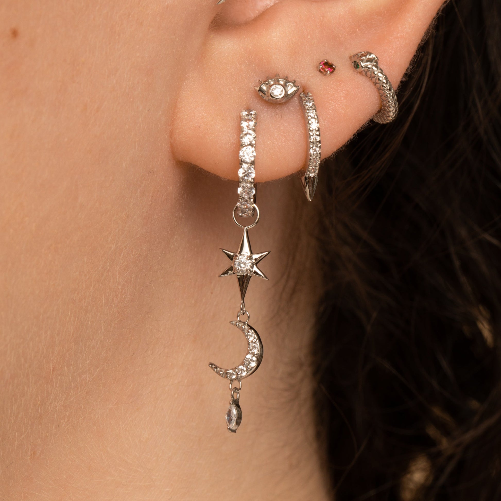 Your forever pair. These solid gold huggies with starry charms are an investment in effortless elegance, designed to shimmer season after season.